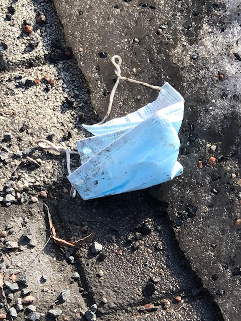 Näitä näkee valitettavan paljon, että roskis on vieressä mutta kasvomaski heitetty silti maahan |